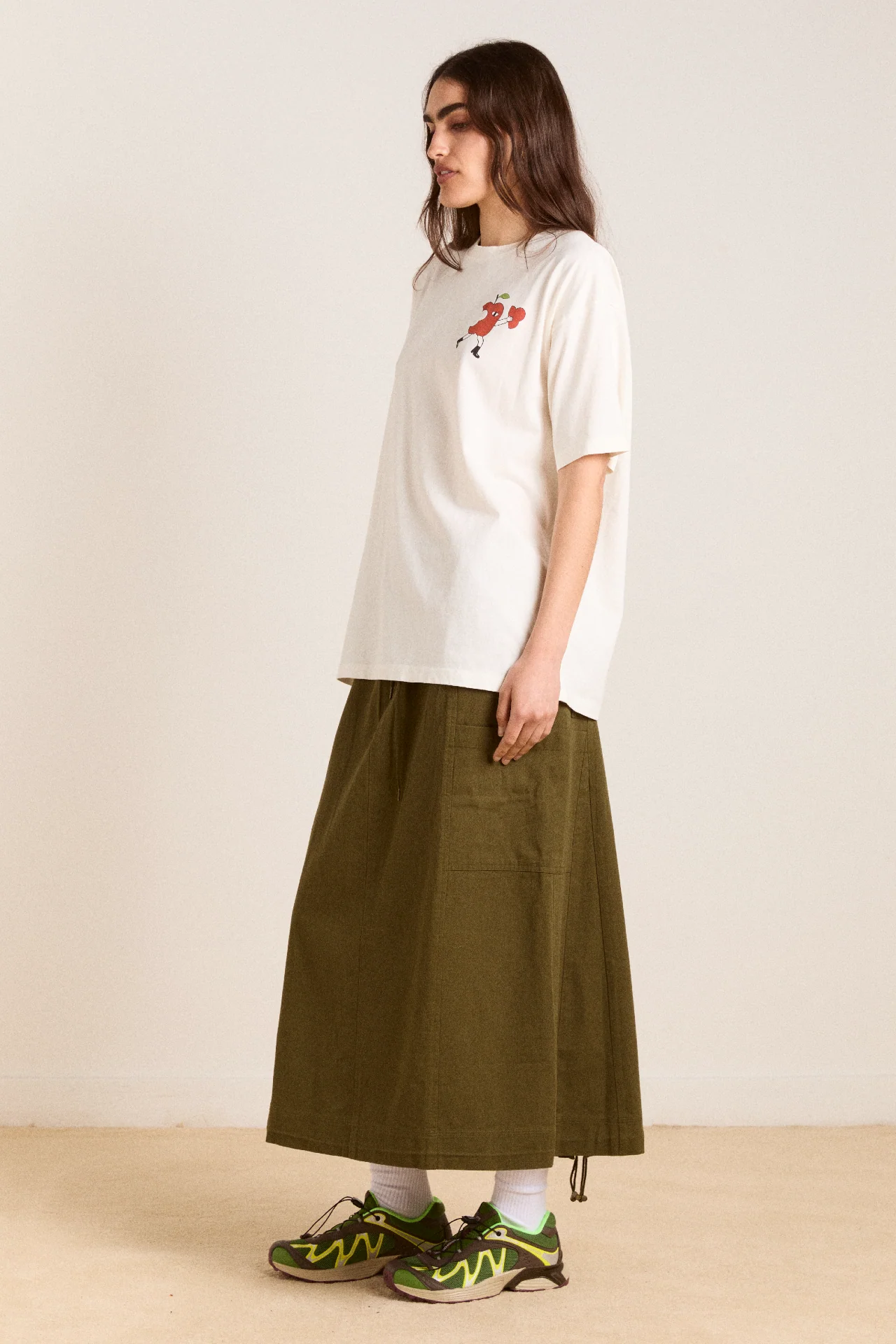 More about meCrafted from 100% organic cotton, our Apple Peel Boyfriend Tee is the go-to piece you’ll reach for every day. Designed with a relaxed, oversized fit, this tee features thoughtfully placed graphic prints on the front and back for a playful touch.
