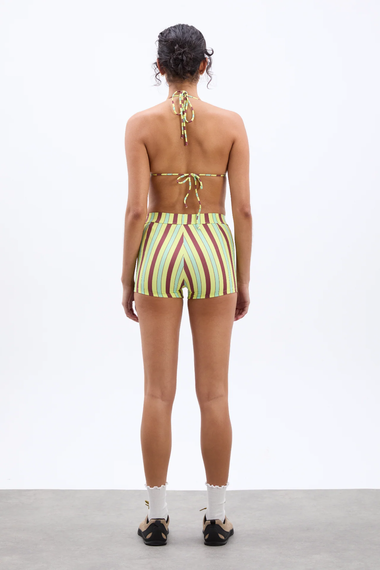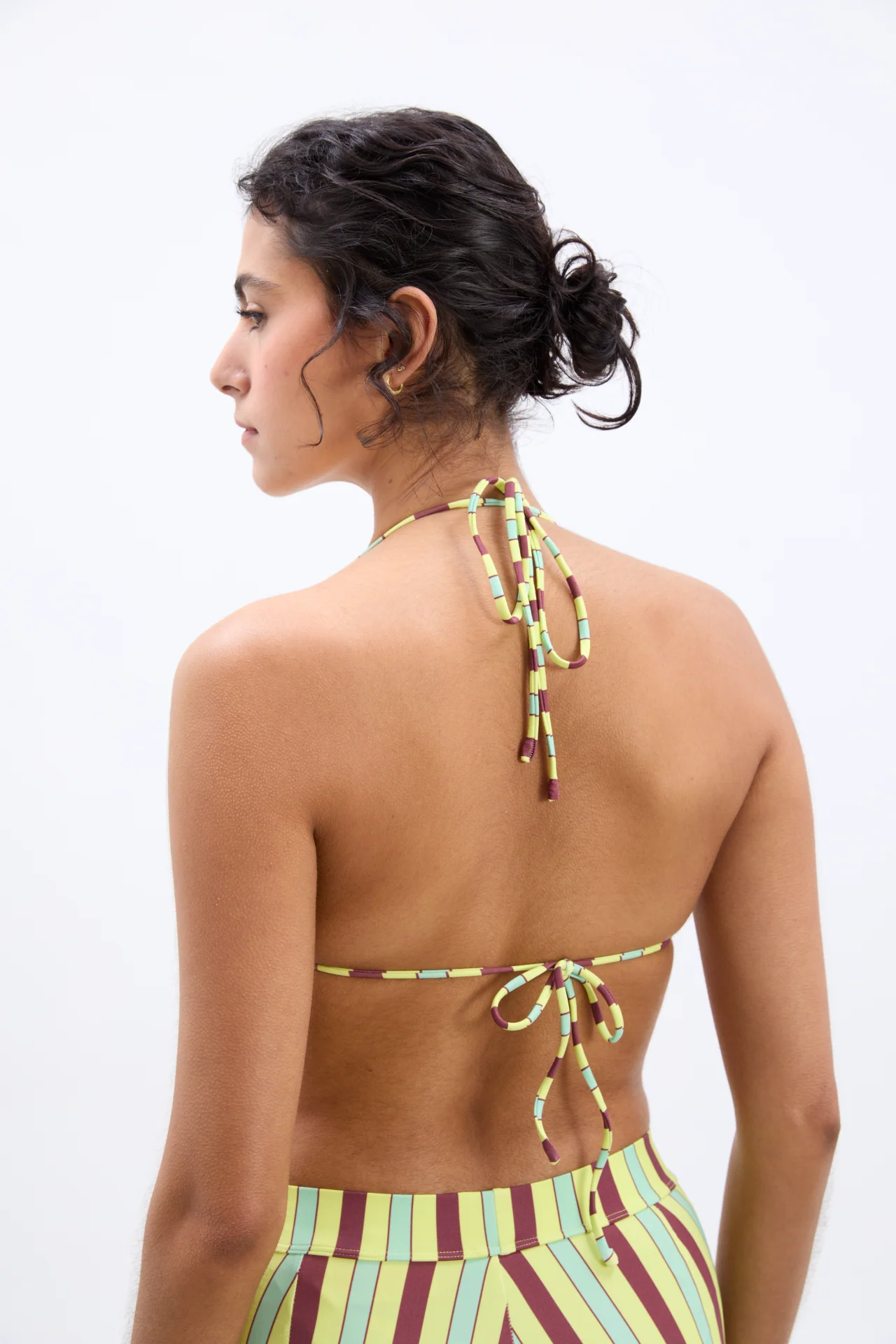 More about meUpgrade your holiday look with our triangle bikini top in tropical stripe. Designed with removable padded cups, and neck and back ties, this bikini top fuses comfort and style. Pair with the matching Tie Side Bikini Bottoms, or Boy Shorts for more coverage.